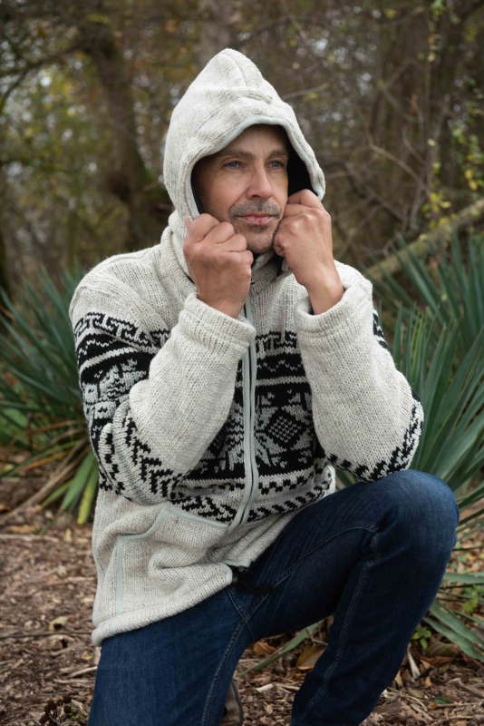 Deze handgebreide jas is gemaakt van 100% puur Nieuw-Zeelands wol met een dikke, zachte fleece voering.