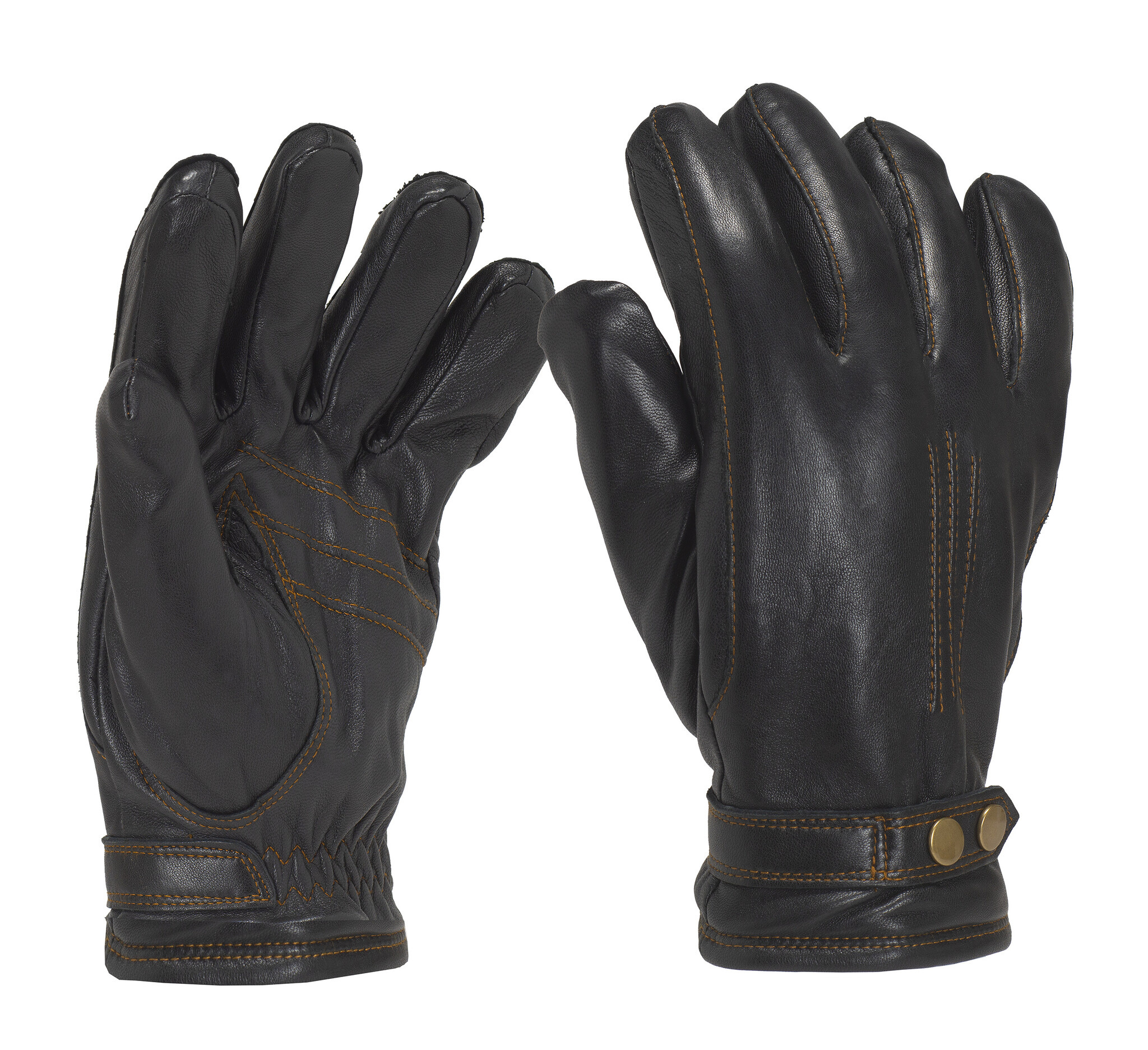 lederen heren handschoenen met fleece voering en verstelbare gesp