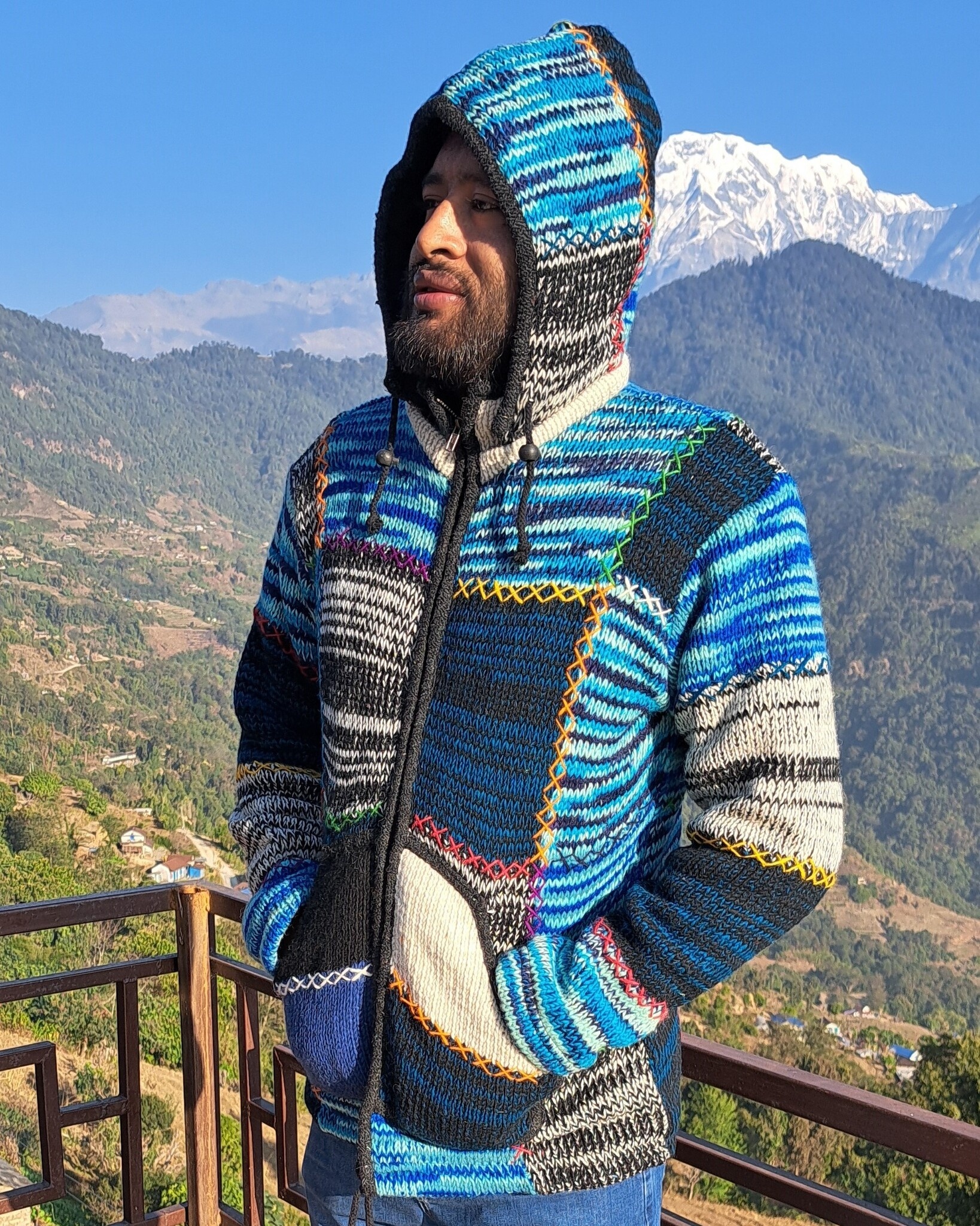 Duurzaam en Fair trade vervaardigde vesten van hoge kwaliteit.Deze handgebreide jas is gemaakt van 100% puur Nieuw-Zeelands wol met een dikke, zachte fleece voering.De jas heeft zakken met fleece voering en een extra binnenzak.Een absolute unieke en warme jas, draagbare meerdere maanden van het jaar, zelfs op een koude zomeravond.Wasinstructies: Handwas of apart wassen op wol programma in de wasmachine.